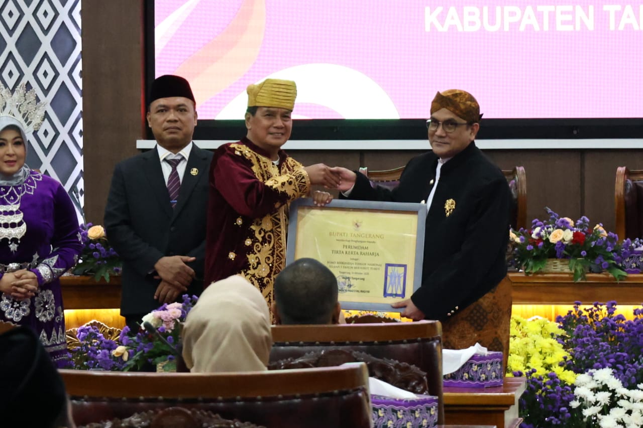 Penghargaan yang diberikan diterima oleh Direktur Utama PERUMDAM TKR, Sofyan Sapar. Pencapaian bergengsi dari Bupati Tangerang ini menjadi bukti konsistensi PERUMDAM TKR dalam memberikan pelayanan terbaik kepada masyarakat dan menjaga kinerja yang unggul dalam tata kelola, inovasi, serta efisiensi operasional, sehingga mampu mempertahankan predikat BUMD Berkinerja Terbaik Nasional selama lima tahun berturut-turut. (Humas)